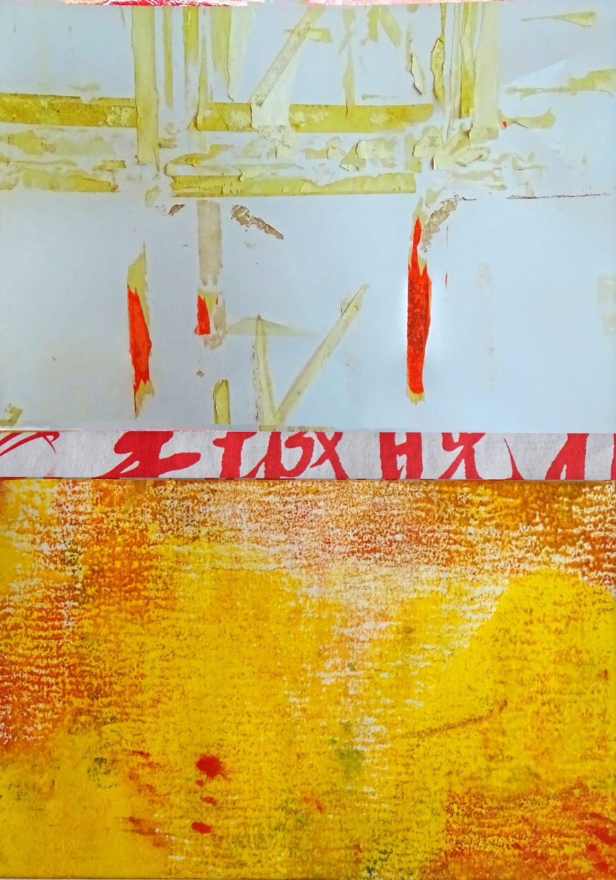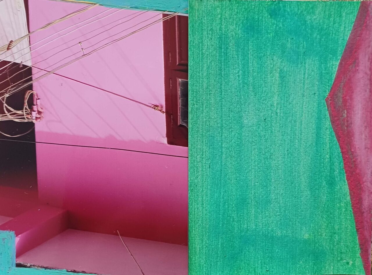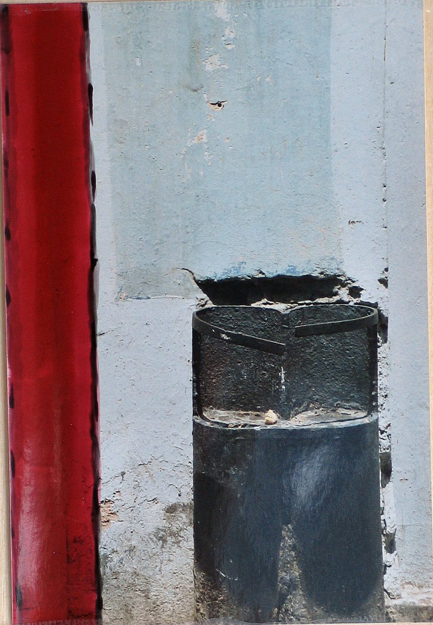 Fotografie übermalt mit Ölkreide, aufgezogen auf HDF, 15 x 20 x 1,5 cm