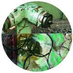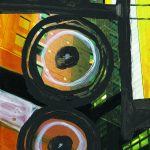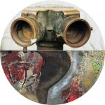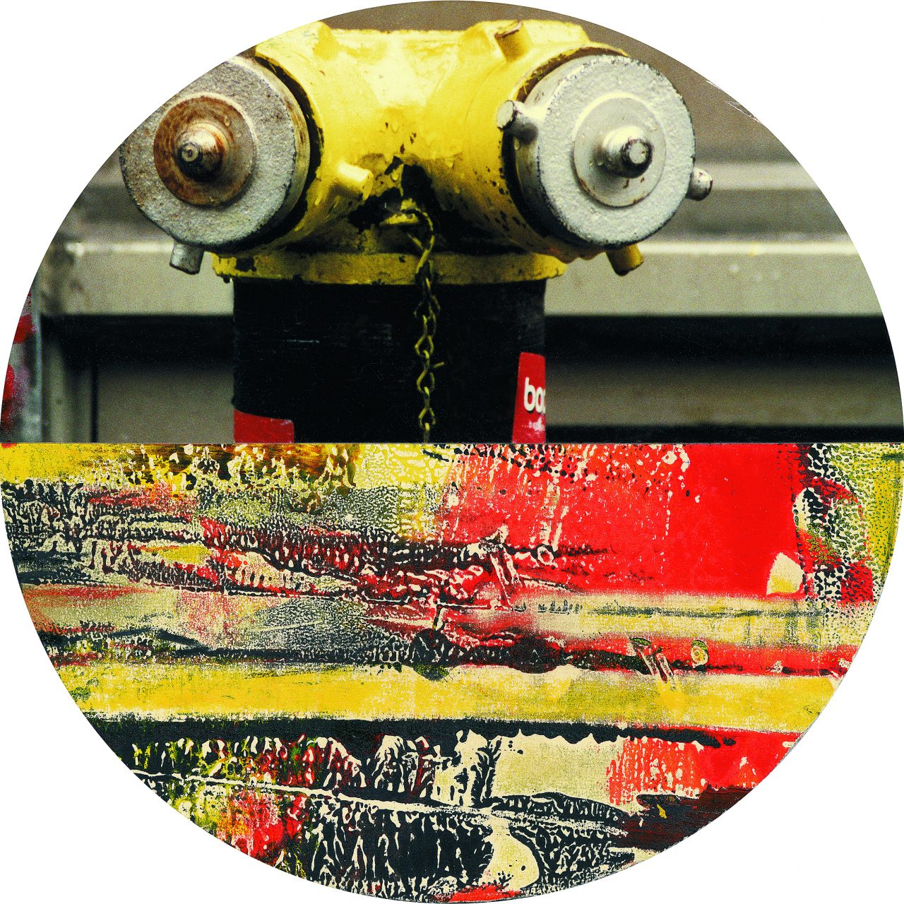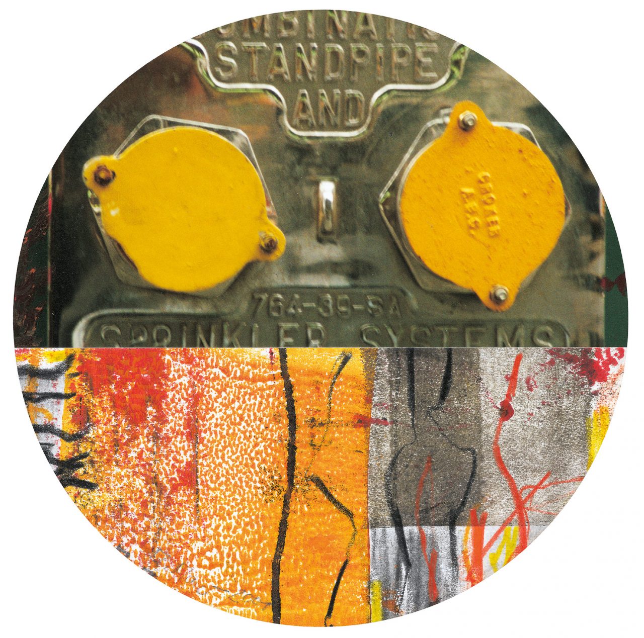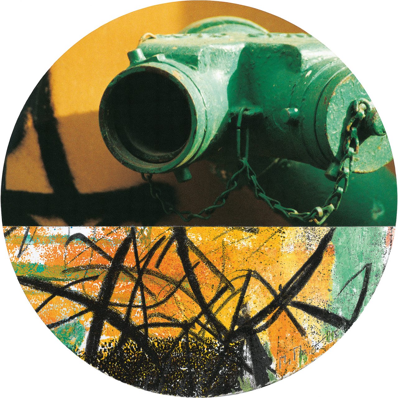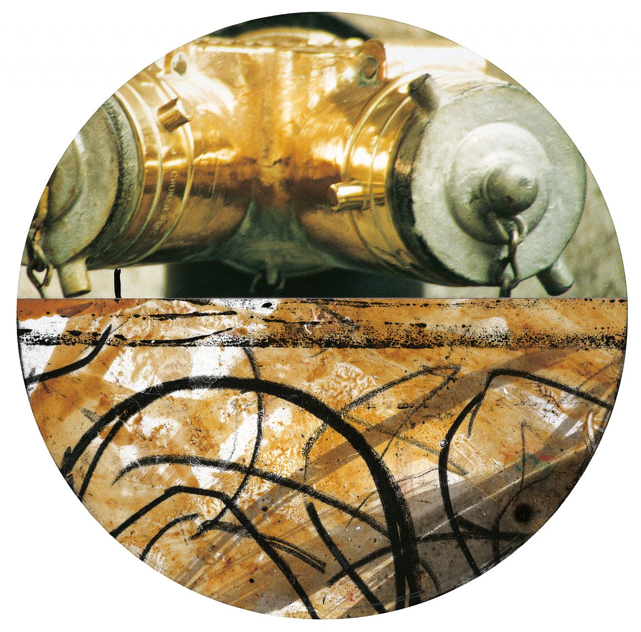 Fotografie von Collage, aufgezogen auf Dibond unter Acryl, je 100 cm Durchmesser