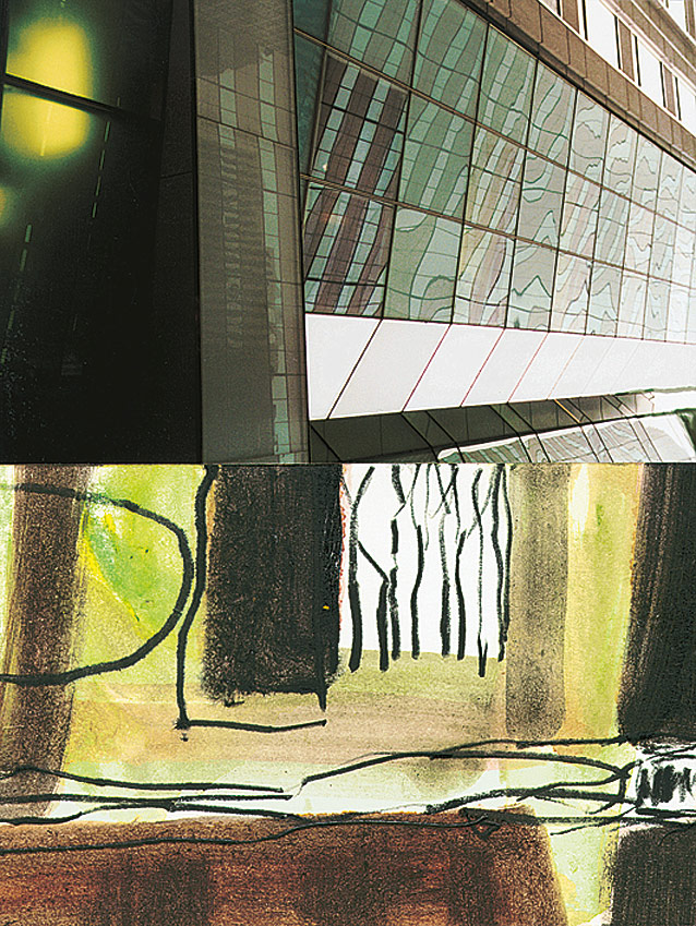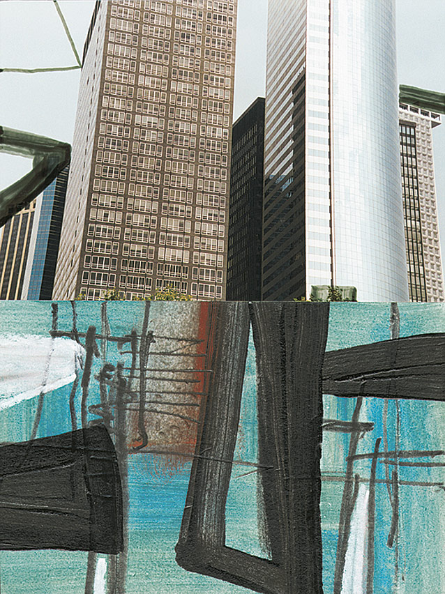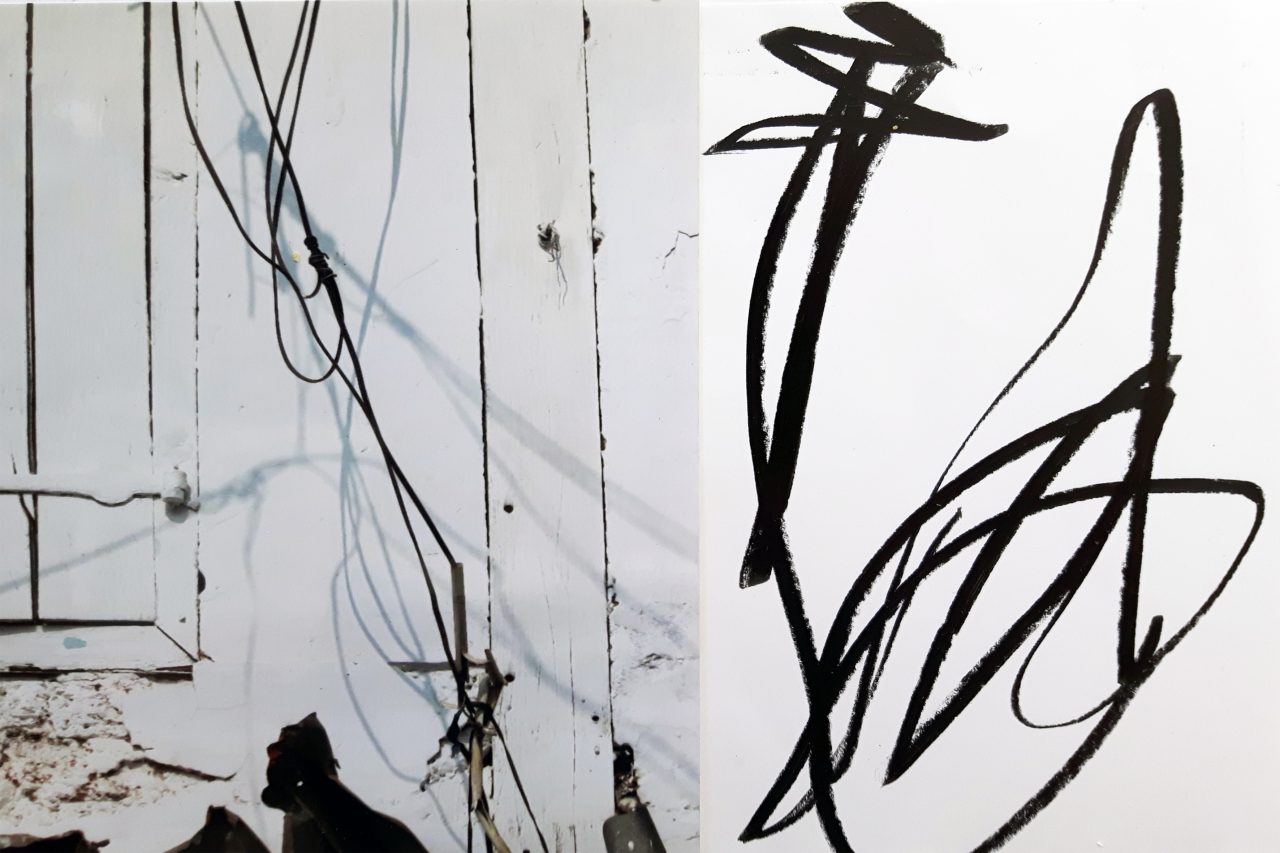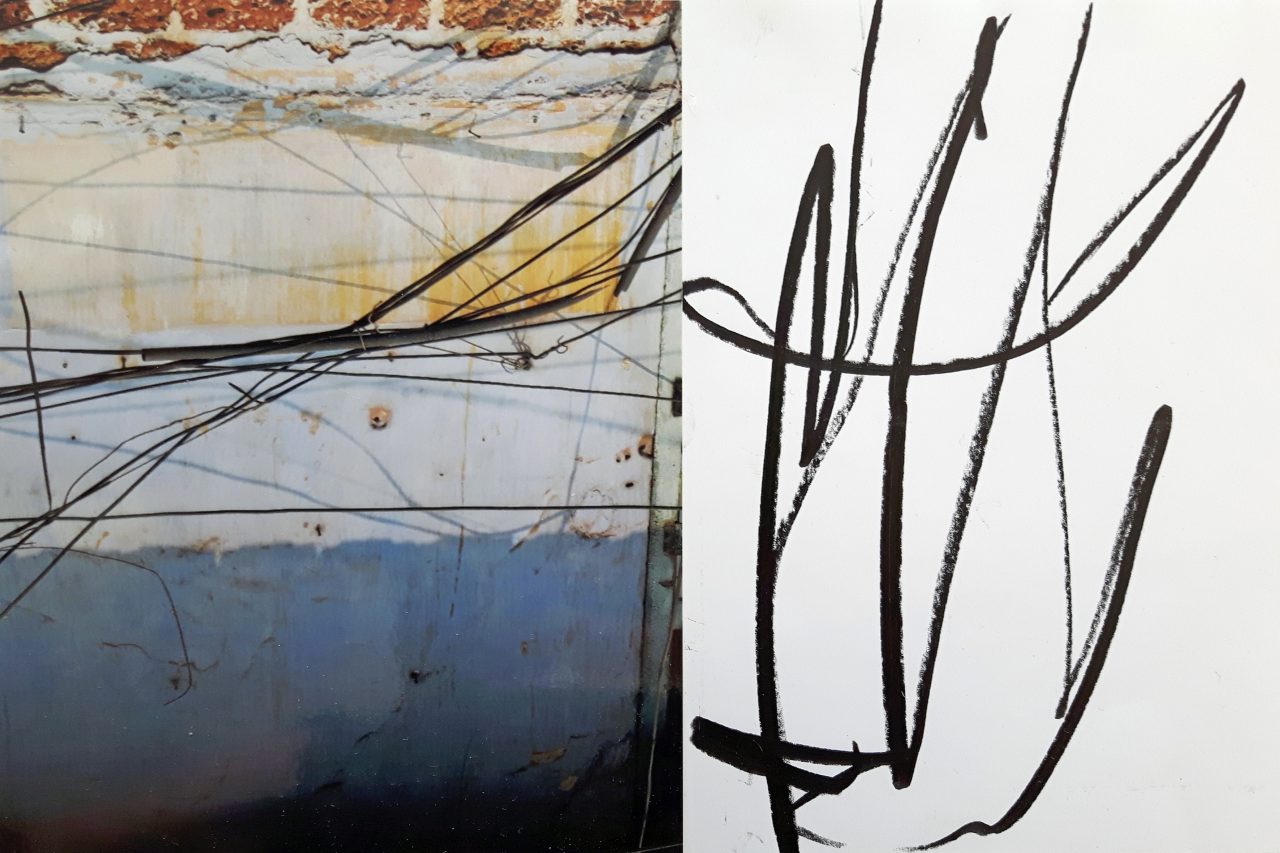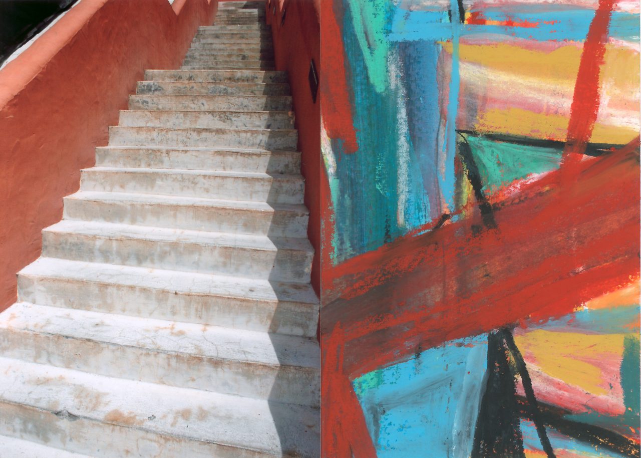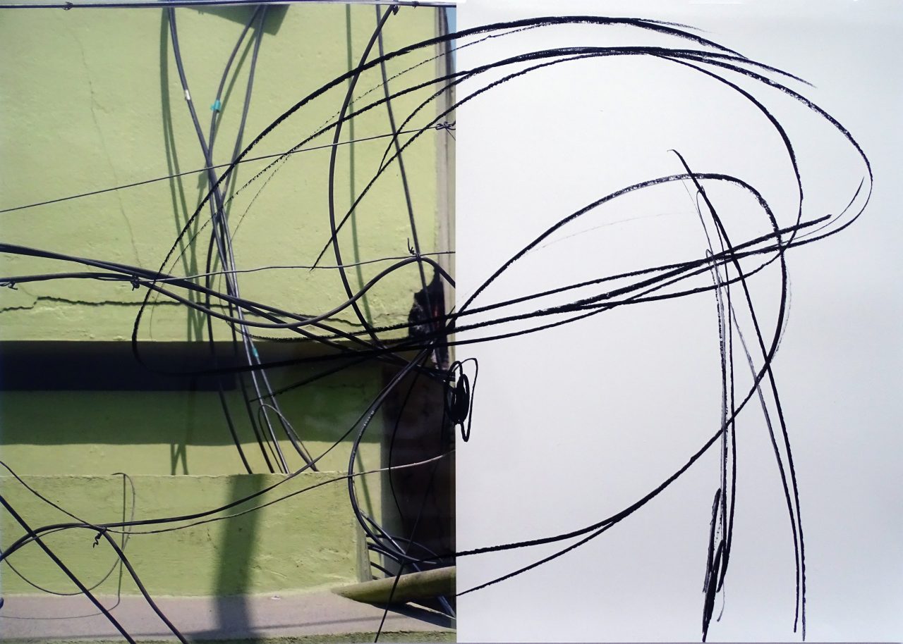 Fotografie überzeichnet mit Ölkreide, 20 x 30 cm bzw. 50 x 70 cm