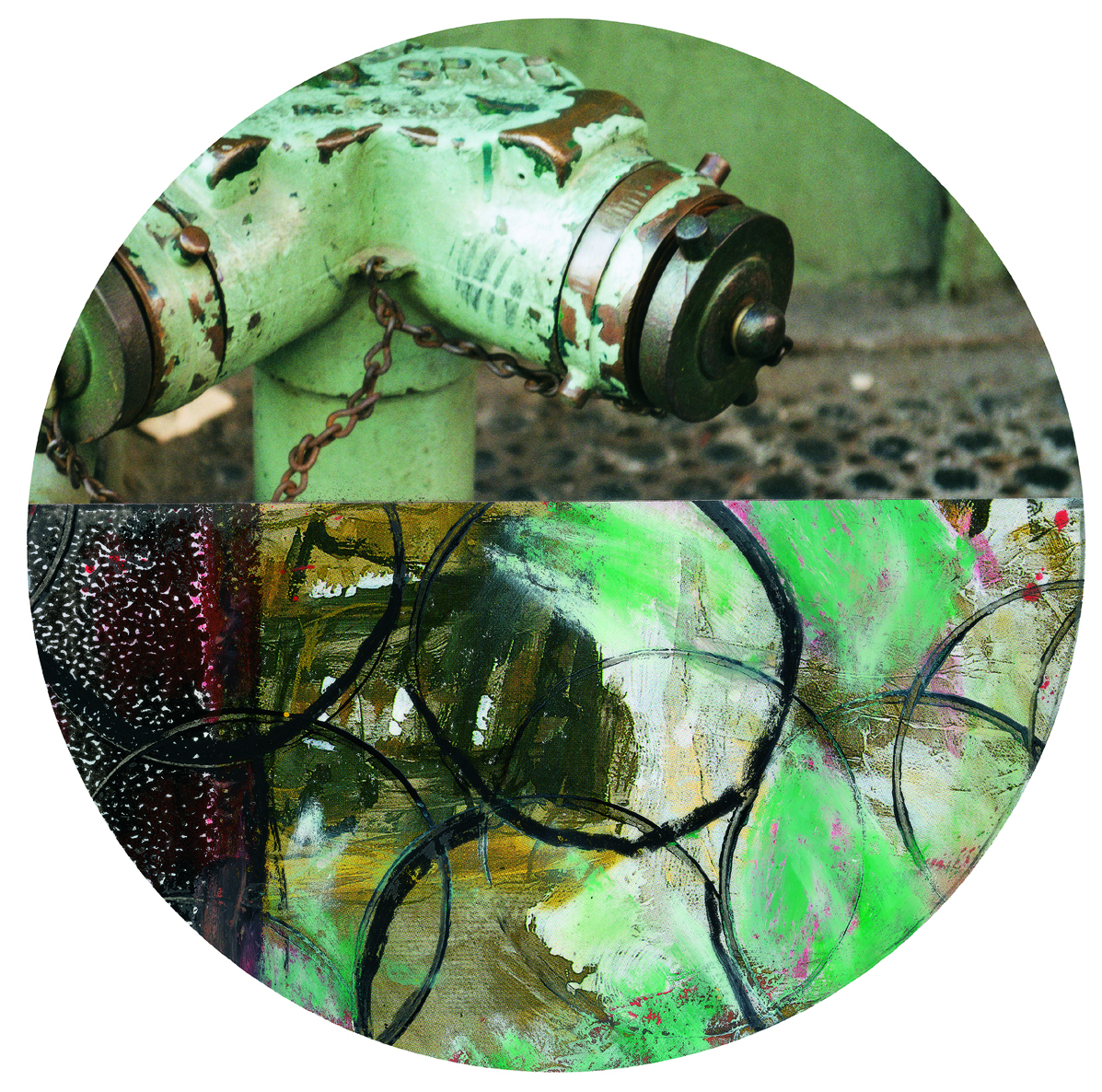 Digitaldruck übermalt auf Leinwand, je d = 128cm