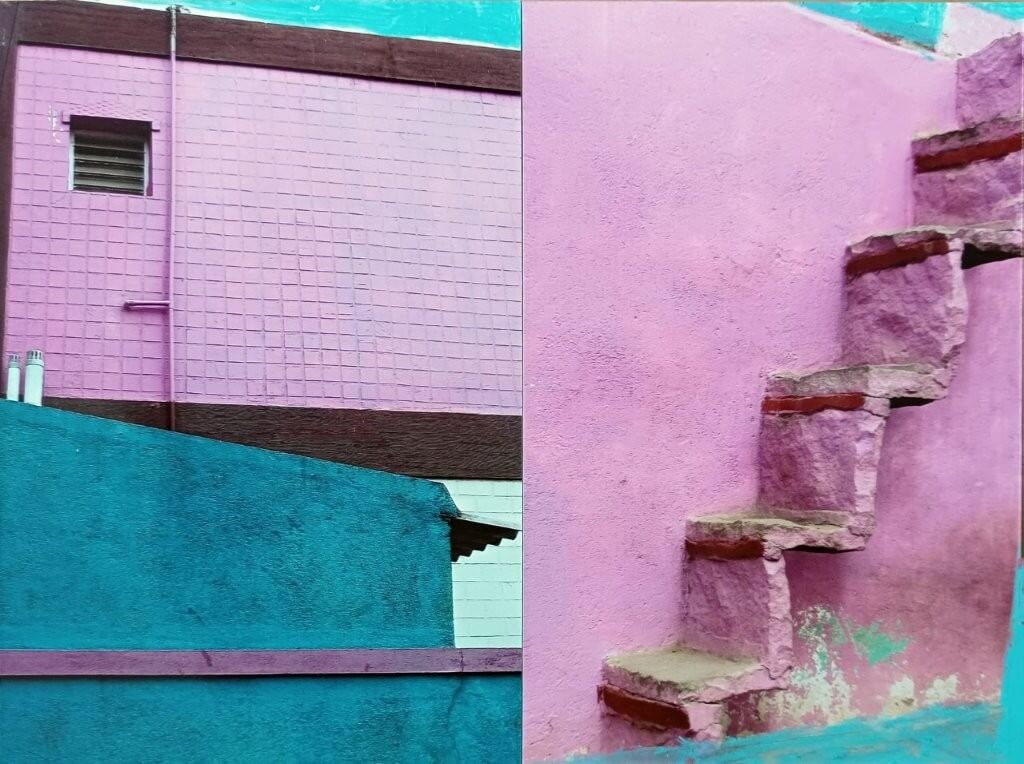 Fotografie bearbeitet und übermalt, je 100 x 70 cm